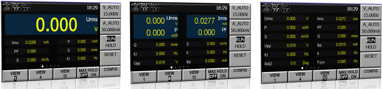 IT9100 series power meter provide a 4.3-inch color high-resolution TFT LCD for the user, and real-time values can be displayed with high brightness and remarkable colors even in a dark test environment. In addition, the IT9121 power meter provides multiple interface display styles (View1,View4 and View12). The user can customize the screen display parameter type and display sequence. The humane design meets engineers’ measurement demands in different tests.